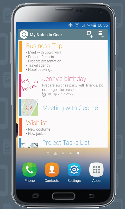 ”My Notes in Gear” brings your notes and checklists to your wrist, as it is available for Samsung Gear smartwatches. View your notes and picture attachments, check off your to-dos, edit your reminders and get notified on your Gear.