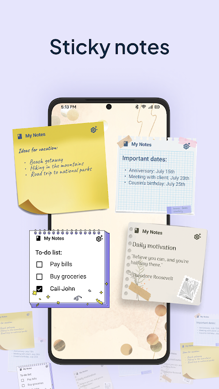 Access your memo notes with ease using the convenient widget shown on your device's home screen just like sticky notes.