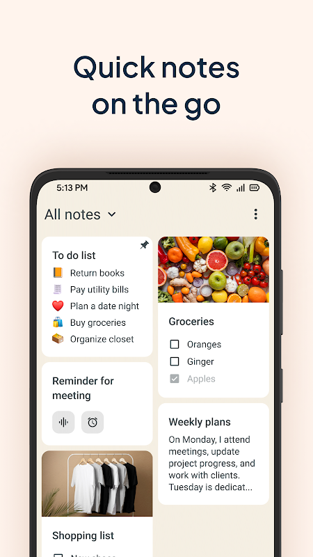 Safeguard the thoughts that you jot down, a checklist or voice notes by backing them up to the cloud or internal storage.