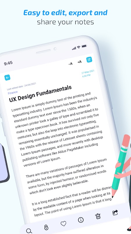 - Organize notes by folders