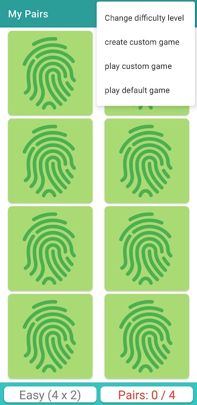 My Pairs is a 100% free customizable memory game. Play one of the pre-defined games, or play a custom game created by you or a friend! You can create your own memory game by choosing photos from your phone.
