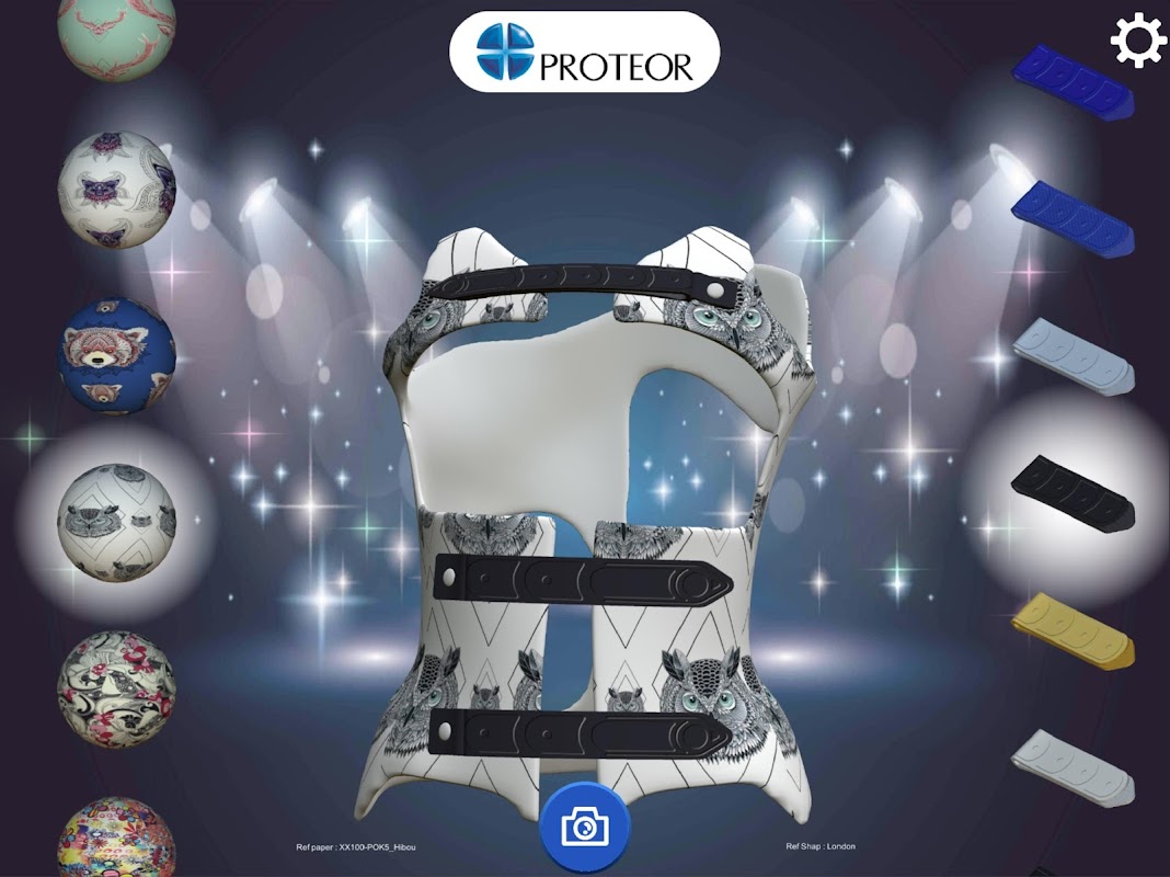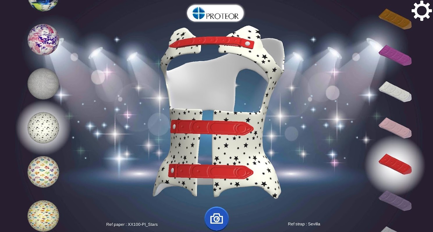 Proteor created this application to allow young people who are going to have a scoliosis corset to be able to choose their patterns and their straps in a fun way.