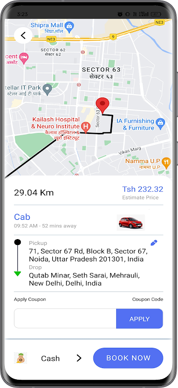 Real-Time Tracking: Track your ride's arrival and route in real time.