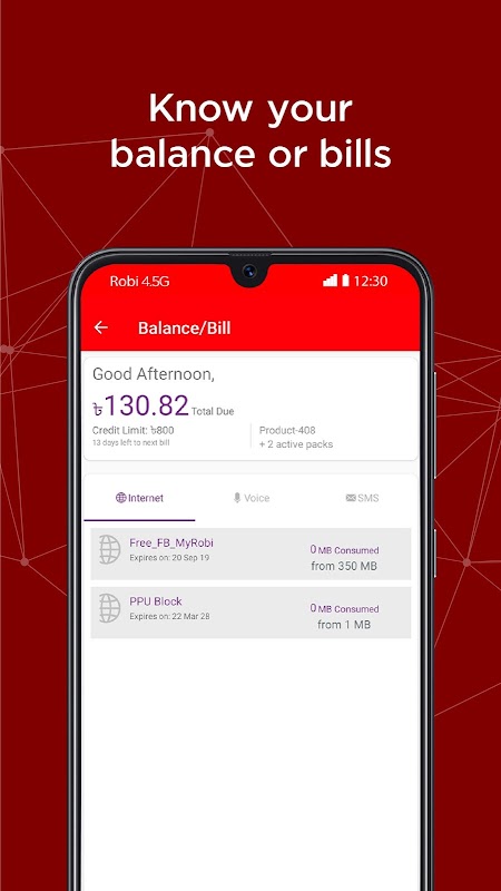 3. Check your balance for main account, data, voice and SMS anytime!