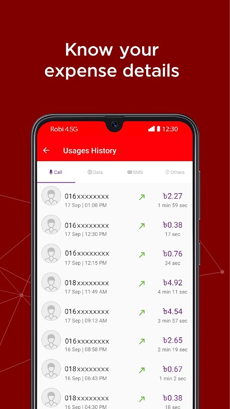9. Usage History to track your Call, SMS, VAS and Internet Usage.