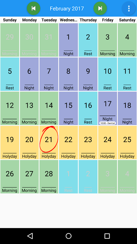 My Schedule is the ideal diary for those who have moved working schedules.