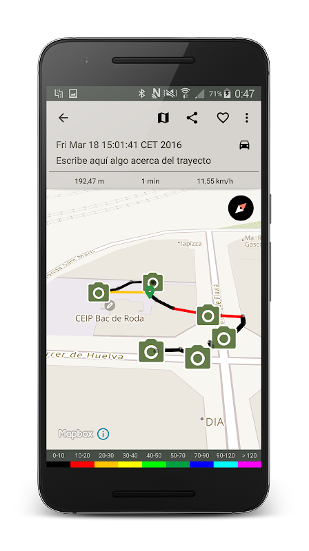 - Track view with speed colored segments.