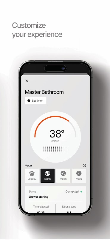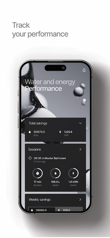 The My Water app tracks the performance of your Orbital Shower including water saved and consumed.