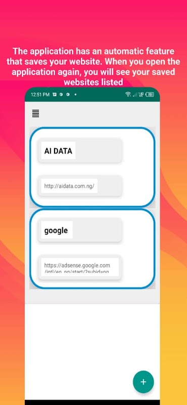 Once you have added your websites, My Website conveniently stores them for future use. When you open the application again, you will find a neatly organized list of your saved websites. Whether you prefer to access your websites within the app's built-in browser or open them in your device's default browser, My Website offers the flexibility to choose.