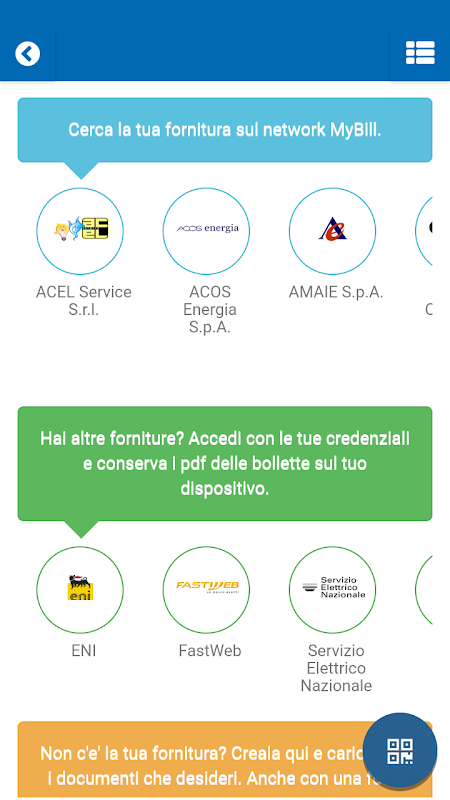 MyBill è il raccoglitore per le bollette delle tue utenze. Registrati gratuitamente su MyBill, verifica le aziende abilitate e aggiungi le tue utenze; puoi consultare l’estratto conto, scaricare le bollette e pagare online (solo su aree abilitate). Sincronizzando le utenze puoi consultare anche offline i tuoi documenti. Puoi inoltre attivare la notifica delle bollette in scadenza.