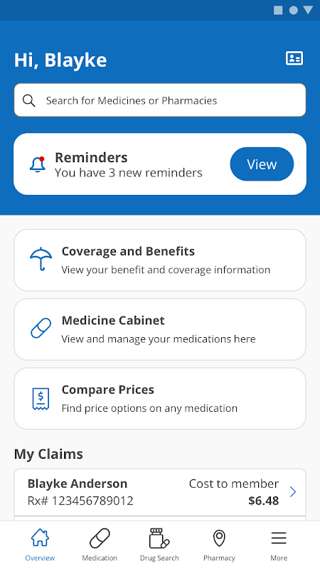 Search for drug information and cost estimates, view and compare pharmacies near you, view reminders related to your prescriptions, and identify savings opportunities to get the lowest price on your prescriptions.