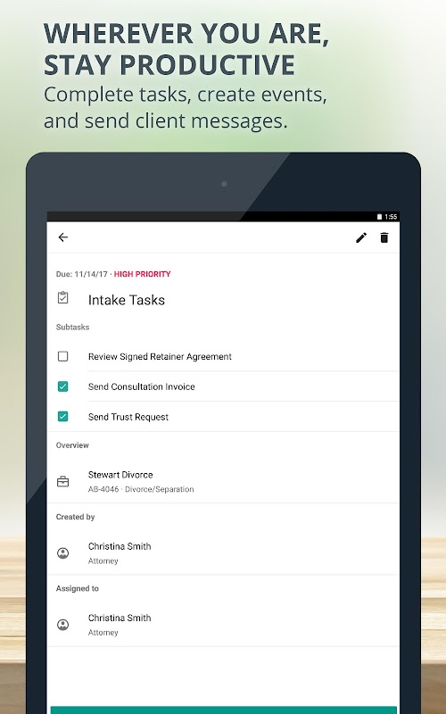 This app is for lawyers using MyCase’s web-based legal management software.