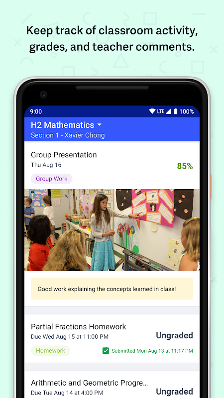 • View grades and teacher-provided feedback