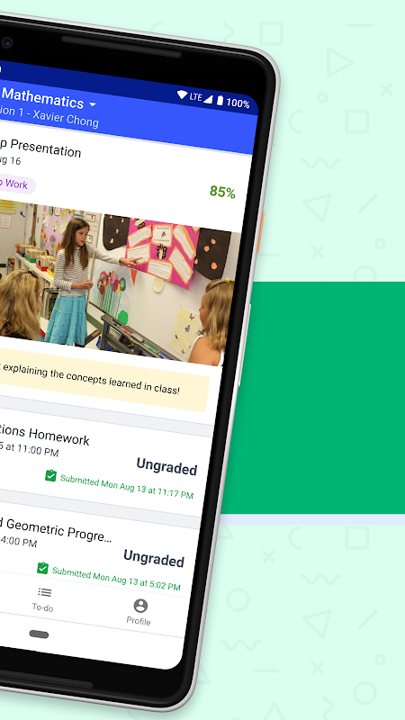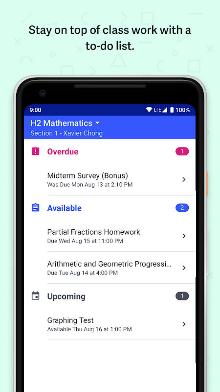• Keep track of class activity, quizzes and assignments with a to-do list