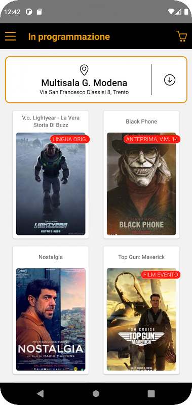 Mobile application for the cinemas of the Cineworld Trento circuit.