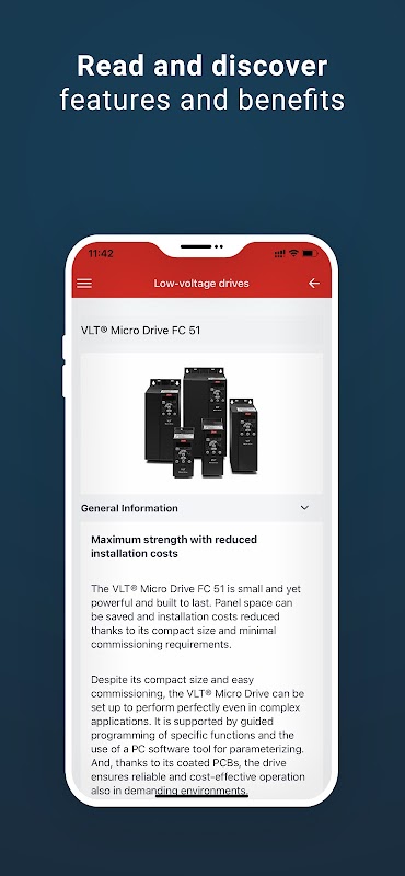 Find what you need by searching industrial sector, or browse products and services directly. The app gives you comprehensive product information including specifications, technical documentation, case stories and videos.