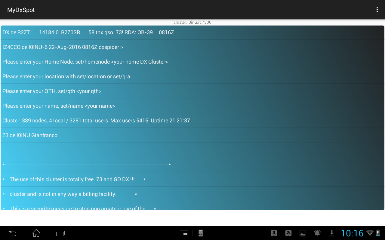MyDxSpot displays spots from dx cluster. Only for ham radio.