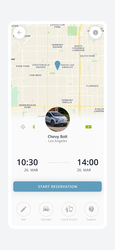 HACLA CMO EV Carshare provides affordable, all-electric carsharing spanning communities nationwide, from New York to Michigan, Oregon, and California. The app allows for quick booking and access to carsharing vehicles. Use it to make or change a reservation, start or end your trip, and lock and unlock the vehicle - all from your phone!