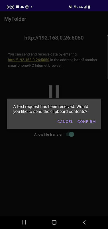 2. Text and files are exchanged using a general web browser on another device.