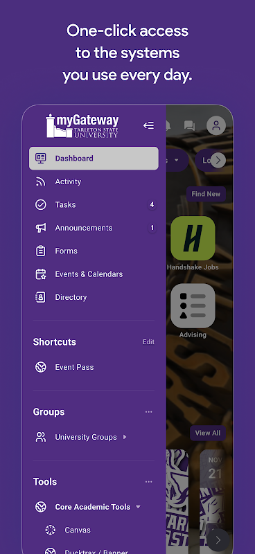The myGateway app at Tarleton State University is the all-in-one app connecting every Texan with the systems, information, people and updates needed to succeed.