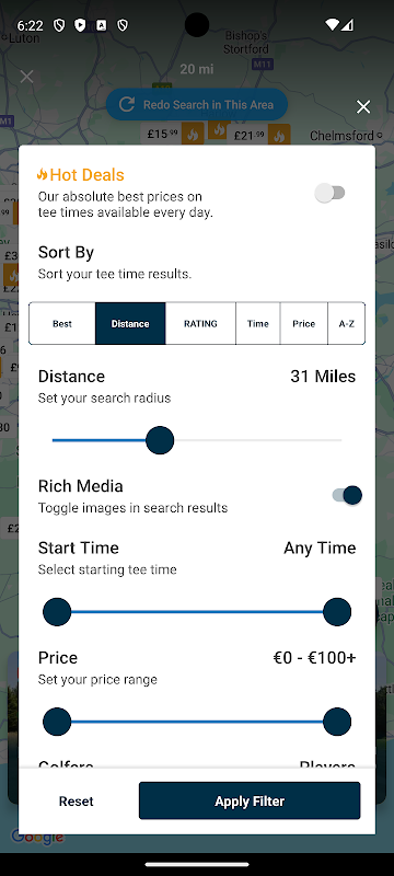 3. Find the very best tee times near you with our "Current location" search