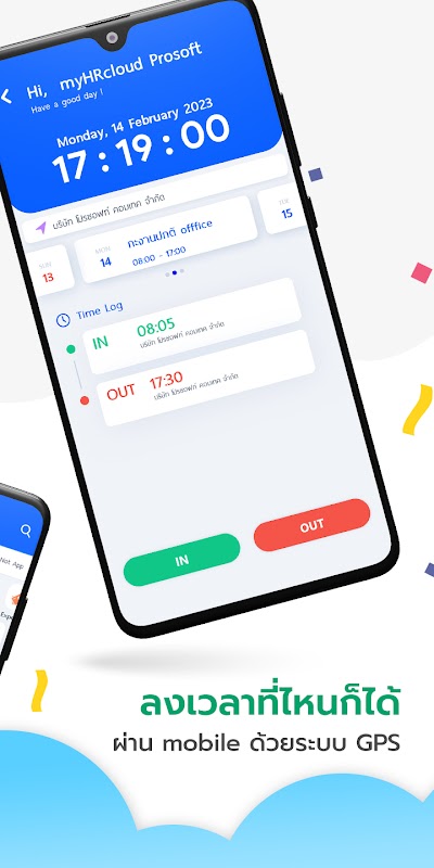 time attendance system Request for leave approval, OT, request to improve the time View salary slips, announcements from HR