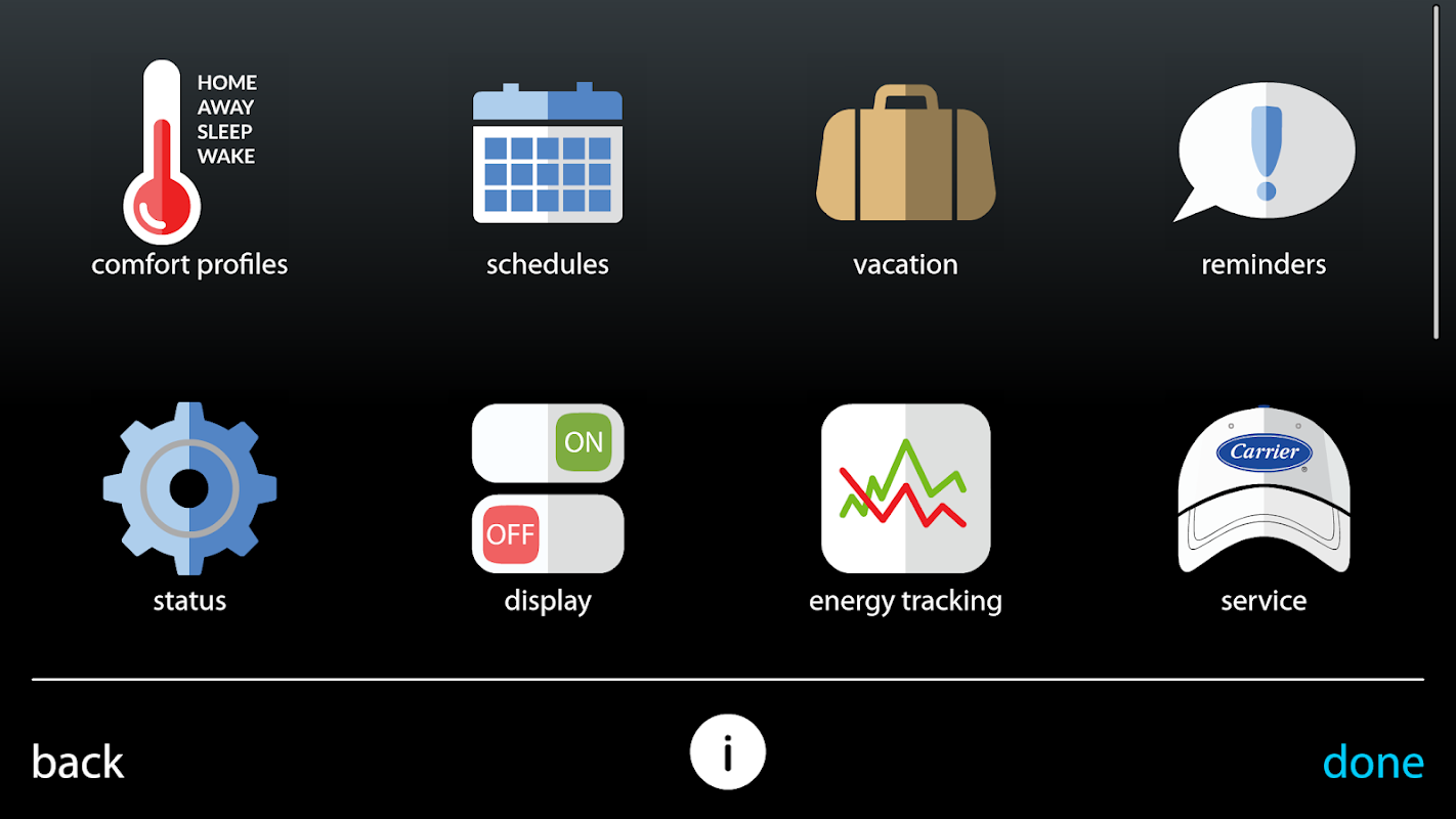 The Carrier Infinity® control can direct an entire advanced home comfort system to let you precisely manage comfort, humidity, ventilation and air purification from one source. It even makes scheduling a breeze.