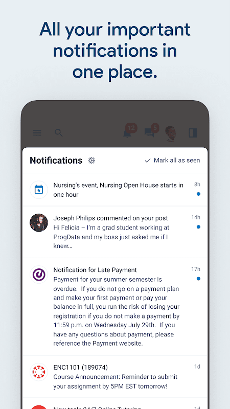 - Receive important notifications regarding grades, holds, and more