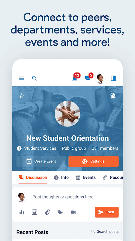 - Find and join campus events