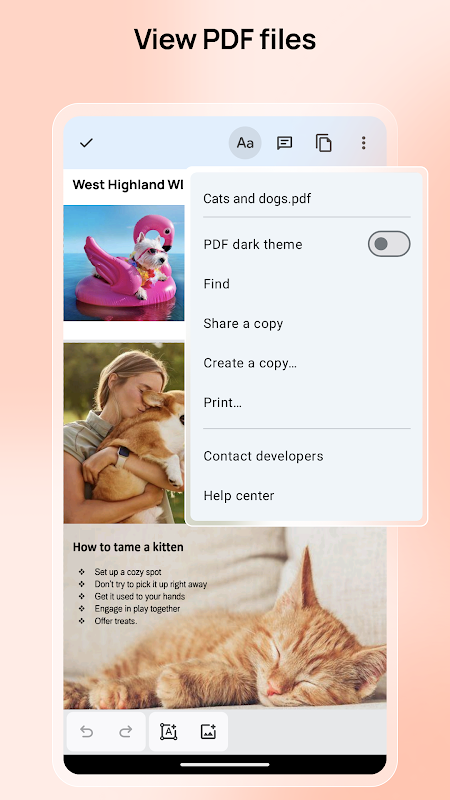 ✓ PDF support: open and print PDF and PDF/A-1b files