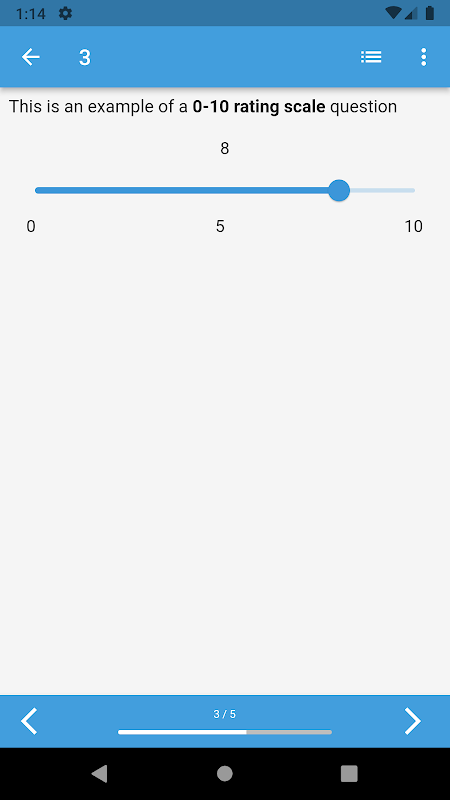 After entering your password and downloading surveys, the app works without an Internet connection. This means that respondents can fill in the survey whenever and wherever they want. Answers are stored locally in the app and are uploaded when there is an Internet connection again.
