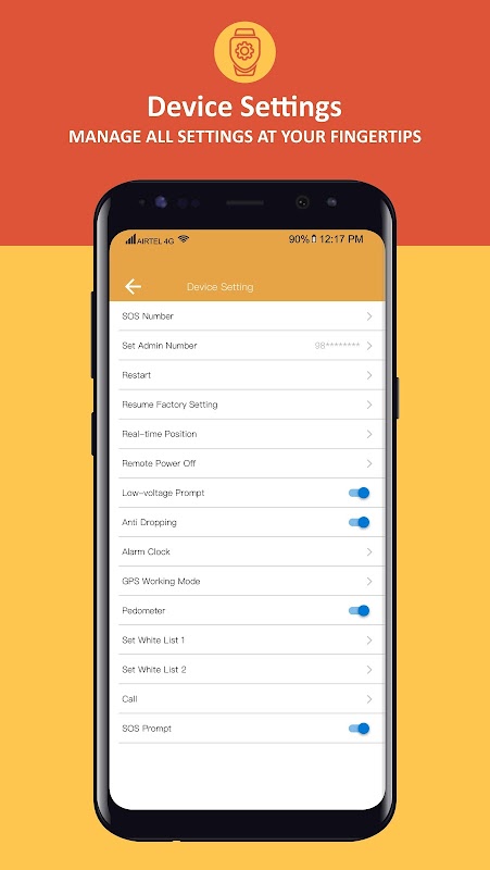 11) Settings: APP can set the SOS number, Real-time positioning mode, shutdown command and so on