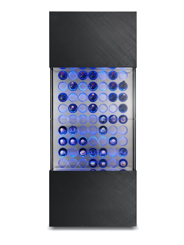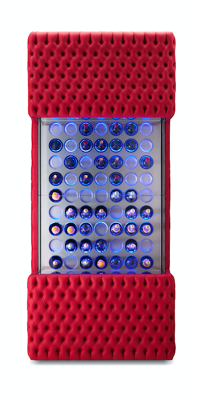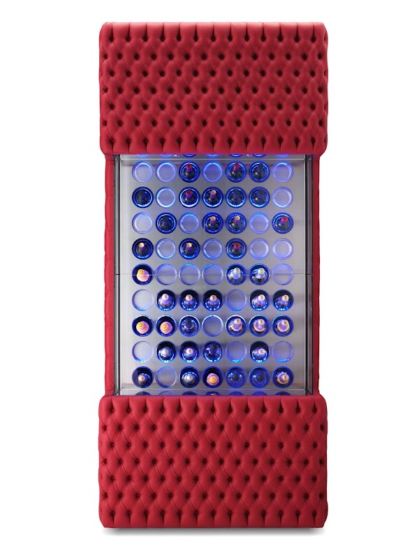 Finally, the application is equipped with a LED lighting system designed to scenically illuminate the bottle holder cells; the background of choreographic lights can be easily varied in any color of the iris.