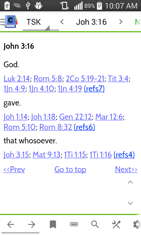 14. Verse link in Commentaries, Dictionaries and Notes to the Bible view. Links between documents, e.g. Commentary reference to Bible passage
