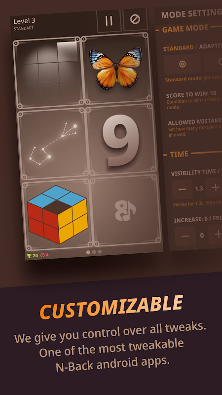 Motivation plays a big role in the end result. You must be motivated to become smarter and understand the benefits of this for you. N-Back can be hard at first, but you need to keep pushing yourself. If you get stuck on a level, try "Manual Mode" until you adapt to the new level.