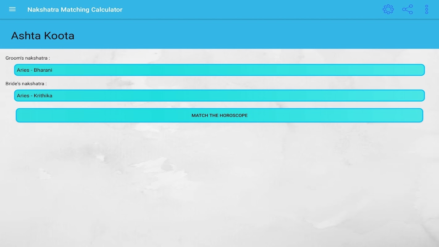 This Nakshatra Matching Calculator app contains 8 porutham matching method followed by north Indian astrology are