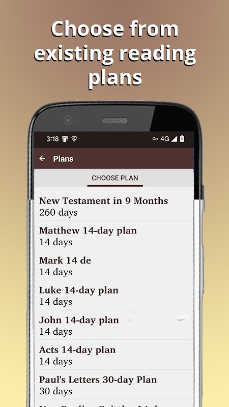 User selectable reading plans