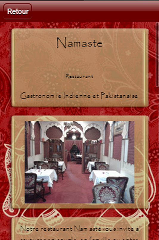 The "Namaste" allows you to view the facts of the Restaurant