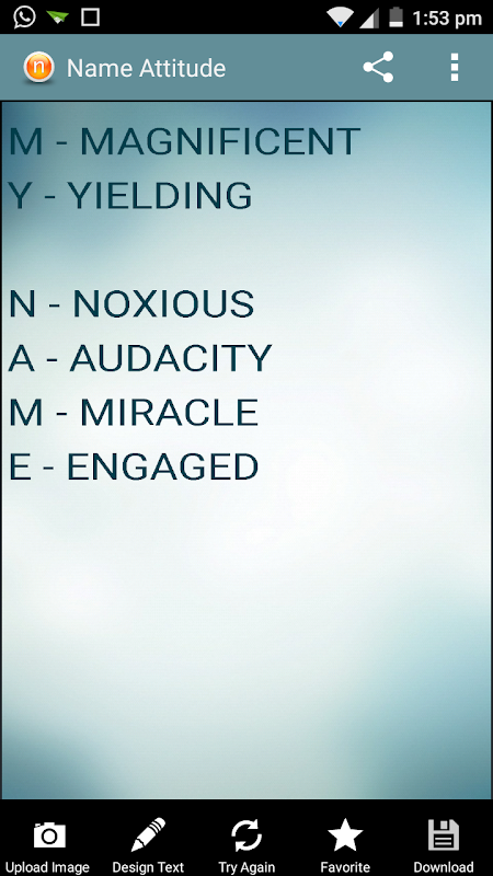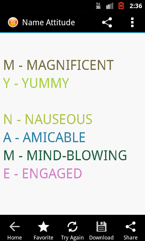 we have large number of collection for each character and it generate random Attitude from that, so you can create n number of combination for your name or any other person name, your company name,
