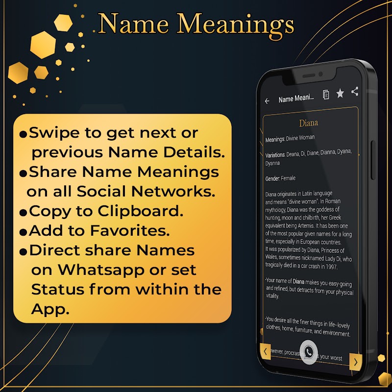 ☆ 11,000+ names collection with meanings, origin, history, impact of life, marriage and career.
