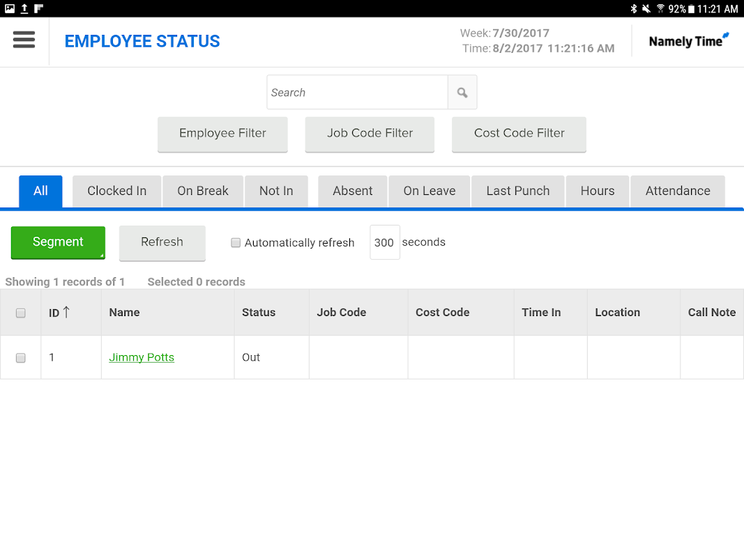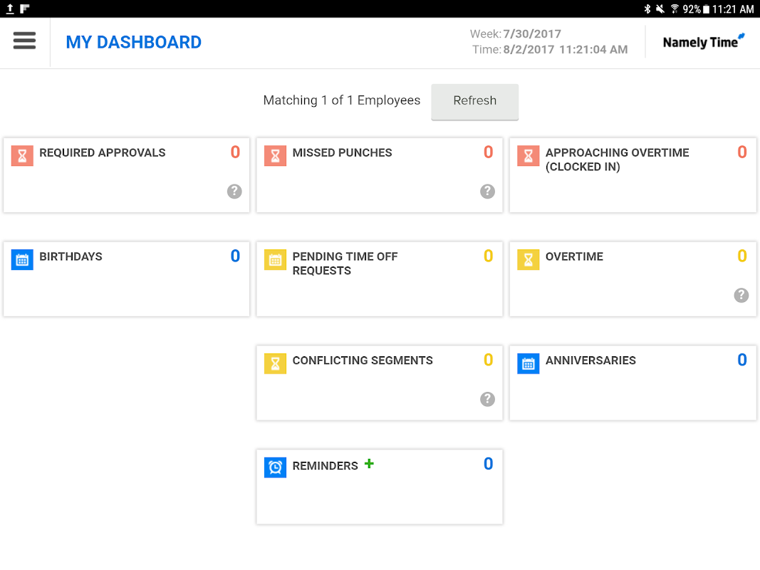 Used with Namely, Namely Time. Whether you are on-site or on-the-go, get a real-time snapshot of employee information right to your tablet using Wi-Fi or 3G/$G/LTE connectivity. Used with Namely Time Manager, Mobile Manager lets you easily access the dashboard, Employee Status monitor, and messaging so you can make those important, time-sensitive business decisions where ever you may go.