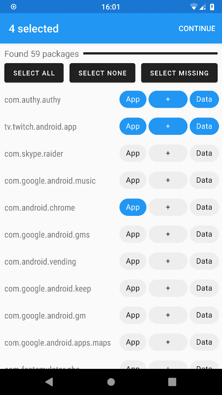 ◼ Choose from restoring only an app, only its data, or both.