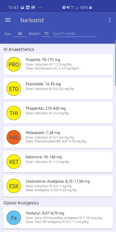 This app provides basic and general information about daily anesthesia medications and their dosing based on basic literature of anesthesiology. It consists of a modern and nice looking interface with integrated navigation panel and easy-to-use groups of medications. The app is meant to target professional anesthetists and anesthesia residents.