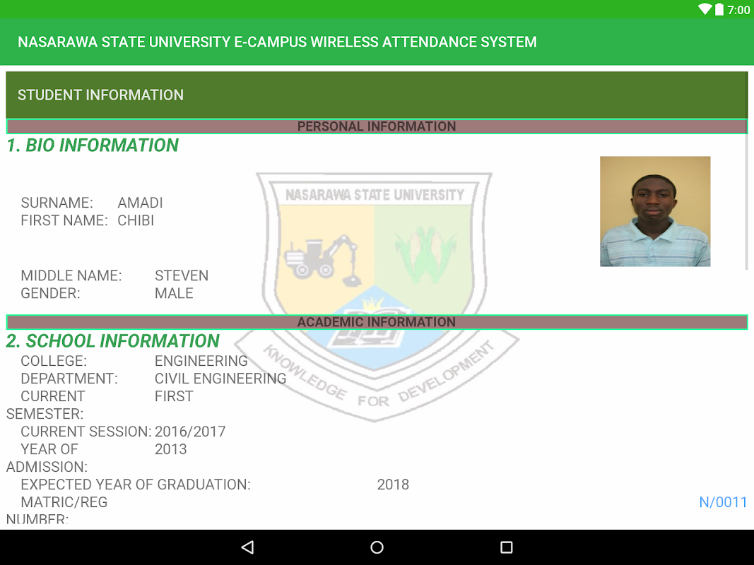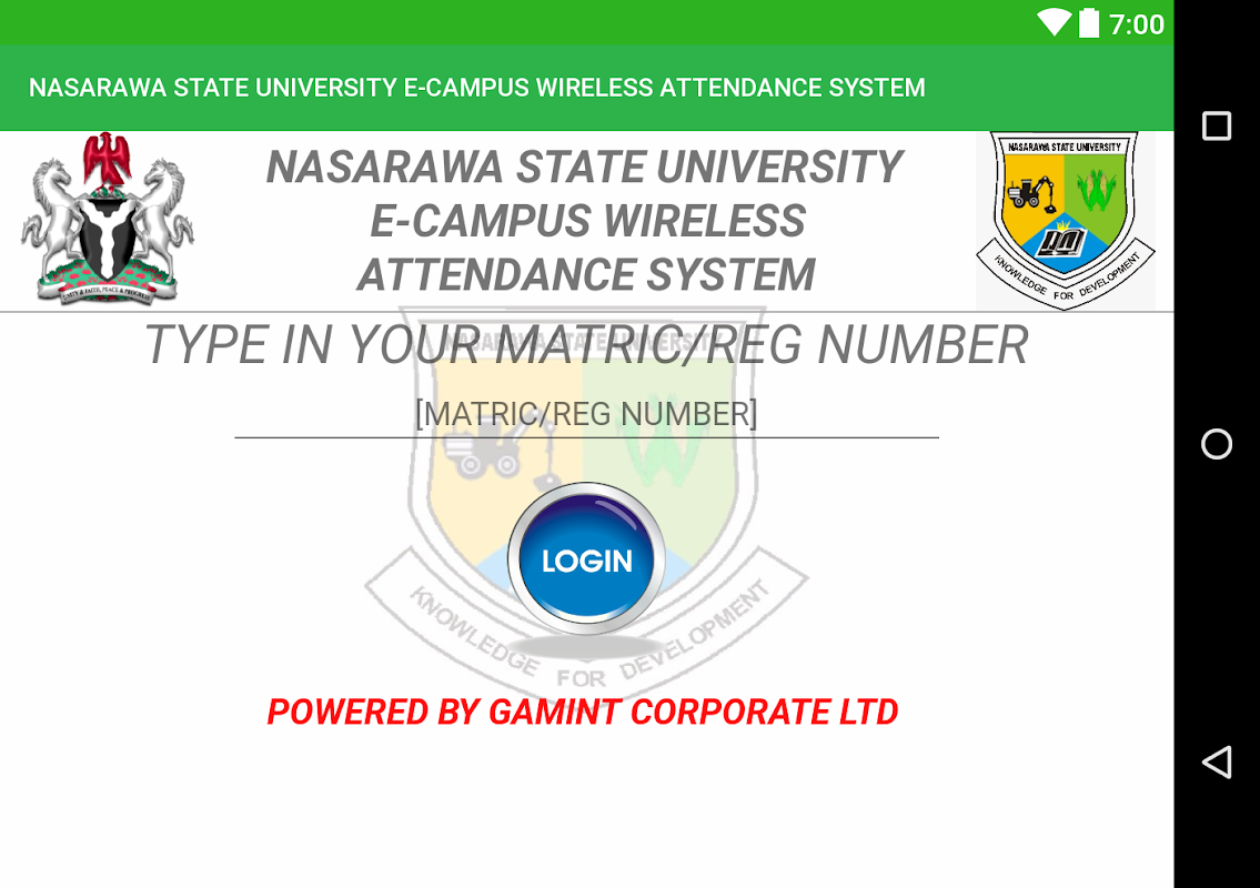 App on TPS 350 for Nasarawa State University E-Campus Management System