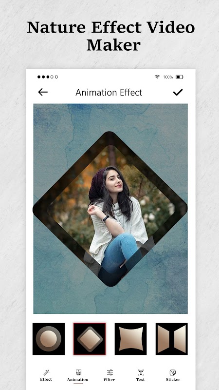 ☘ In Nature Photo Effect Video maker user can making photo video slideshow with animated nature theme, nature stickers, texts and nature songs.