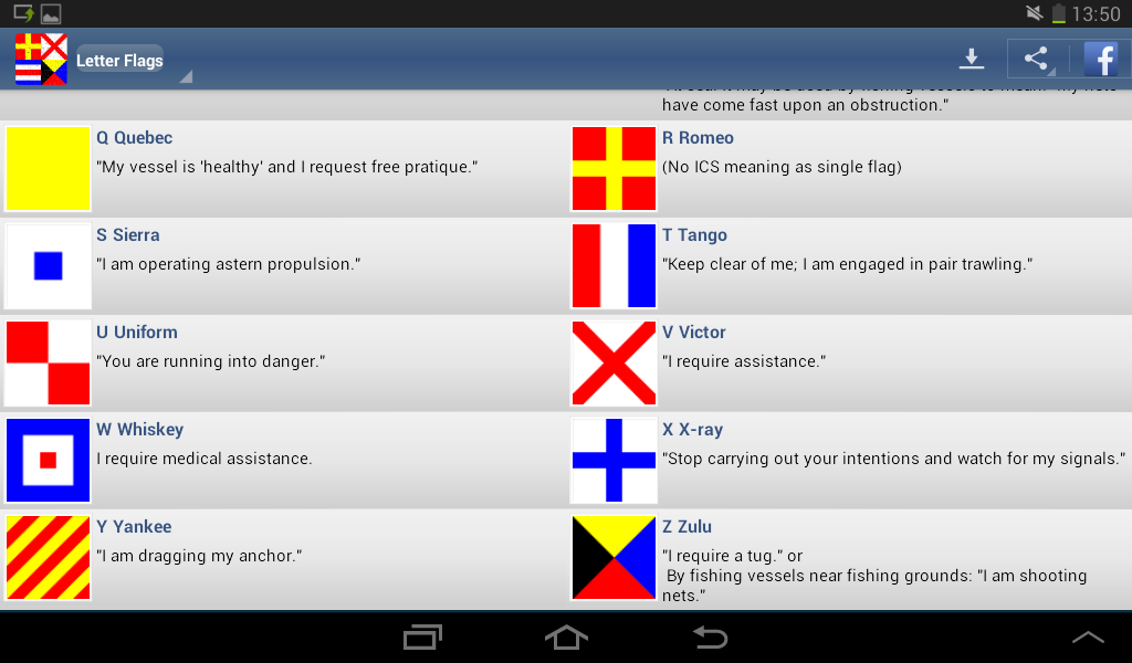 "Nautical Flags" teaches you all signal flags which are used to communicate with messages, at times because radio silence is required. The system of international maritime signal flags is one system of flag signals representing individual letters of the alphabet in signals to or from ships. It is a component of the International Code of Signals.