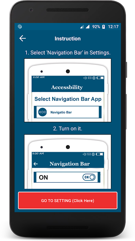 * This application do not receive and send any kind of sensitive information using Accessibility Service of Navigation Bar.