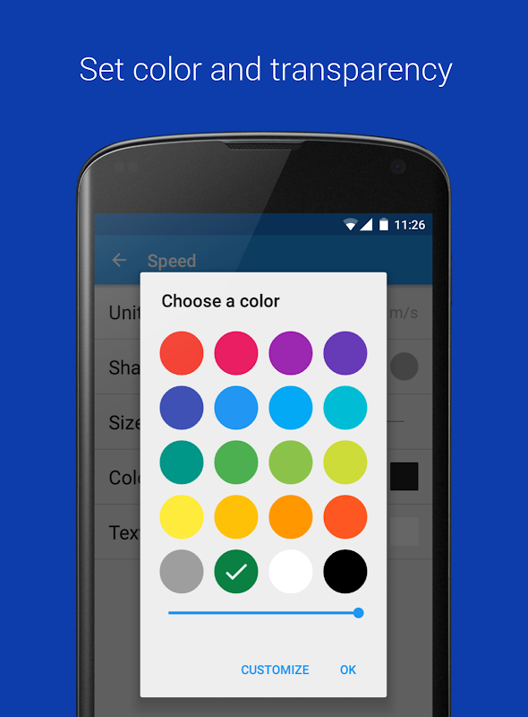 NavMeter features a HUD also that you can activate from menu. Open it and place your device under the windshield: speed, time, altitude and compass will be reflected in it (it works when it’s dark).