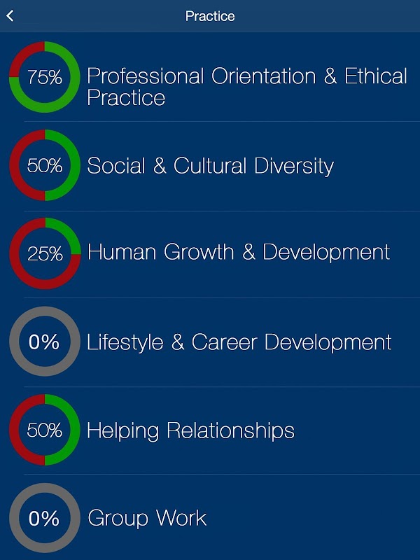 The tracking facility of this app automatically detects the weak areas of the user so that they can be focused on. The bookmarking feature is designed for users to record questions so that they can come back to them later. The interactive app also lets users to seek help from NCE Exam prep experts and monitor their own progress through the progress bar. Mock tests and NCE practice tests allow users to stimulate the exam experience from the comfort of their own portable gadgets.