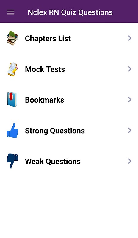 NCLEX-RN Quiz App Gives you an awesome features called Strong & Weak Questions for you to check what are the STRONG & WEAK Questions depends on your score.